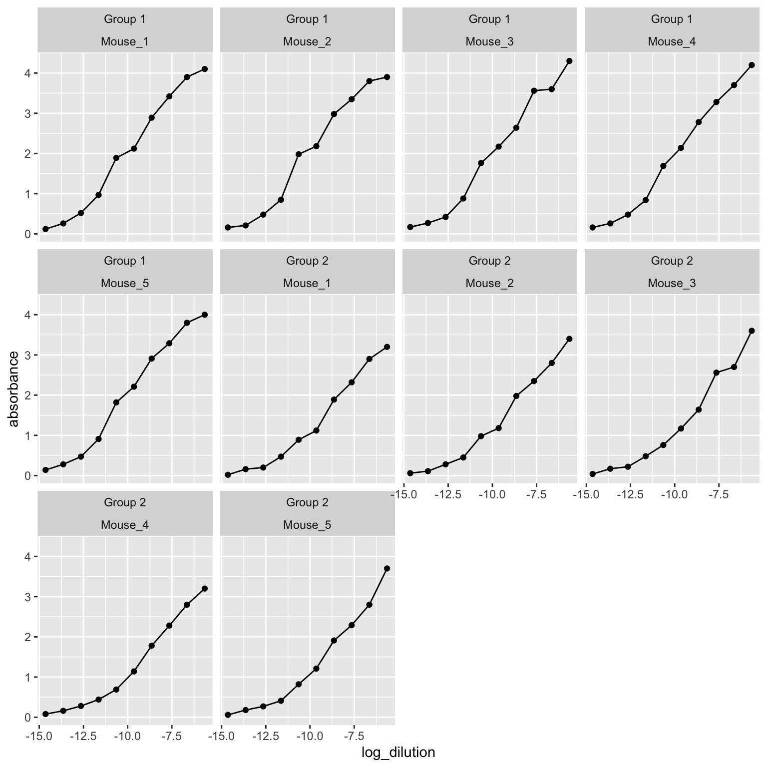 ## Groups numerator denomenator mouse_id absorbance dilution log_dilution